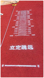 成果验收:喷涂完成后,对场地进行整体检查,确认 “立定跳远” 字样及刻度线清晰可辨、尺寸精准,符合教学与竞赛使用标准(如图 2 所示)。