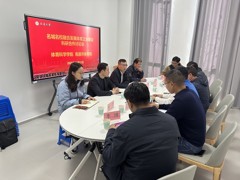 2025 年 11 月 11 日,南通市体育局与南通大学联合举办 “名城名校”融合发展体育之乡建设科研合作讨论会。南通市体育局局长项进、处长徐岗,南通市体育运动学校副校长汤剑文,南通大学体育科学学院党委书记刘军教授、院长娄虎教授,支云足球学院院长於世海教授等领导、专家齐聚一堂,围绕南通体育传统优势项目提升、体科医融合创新、人才梯队建设等核心议题,共商科研合作新路径。