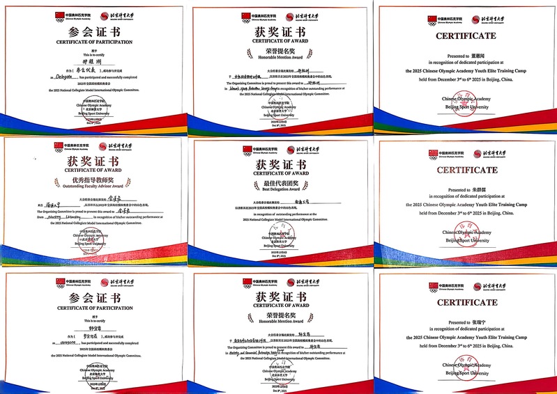 活动包含2025年奥林匹克发展学术论坛、2025年奥林匹克青年骨干训练营、2025年全国高校模拟奥委会活动以及2025年奥林匹克青年论坛四大板块。我院师生代表主要参与了其中两项重要实践活动。在“2025年奥林匹克青年骨干训练营”中,张瑞宁、朱群儒、董蕙闻同学积极参与各项课程与成果分享会,凭借扎实的专业基础和积极的学习态度,顺利完成全部培训内容,成功获得结业证书,展现了我校青年学子在奥林匹克组织管理与活动实践方面的学习成效与发展潜力。